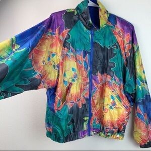 HEAD reversible to electric blue, silky late 80s , 90s vintage sun goddess warm up jacket with shoulder pads, zip front, mock neck, double wall lining.
