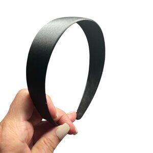 HEADBANDS SET OF 3 - TWO BLACK SATIN THAT ARE APX ONE INCH WIDE - AND ONE THAT IS WRAPPED IN A SATINY FABRIC WITH BUMBLE BEE DESIGN - COMFY TO WEAR