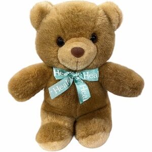 HEALTHTEX HTF Vintage Teddy Bear Plush Stuffed Animal Brown Aqua Green Bow 11 In