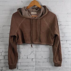 HEART & HIPS BROWN CROPPED LONG SLEEVE HOODED PULL OVER SWEATSHIRT SIZE SMALL