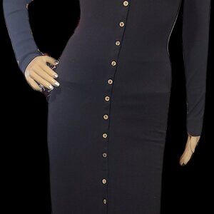 This cute midi dress has 14 buttons down the front. The fabric feels like wearing a pair of comfortable pajamas! Long sleeves, and body hugging, this dress is perfect for a night out! Measurements include shoulders 14" pit to pit 16" and back length of 42" - Have a wonderful day and thank you for looking!