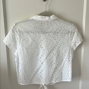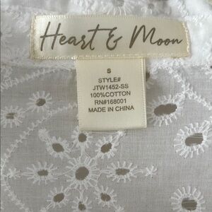 NWOT This stylish 100% cotton white top from Heart & Moon features a chic tie-front design and a classic polo collar and eyelet pattern. Its cropped length and lightweight fabric make it perfect for warm weather, while the button-down style adds a touch of sophistication. Womens size small