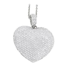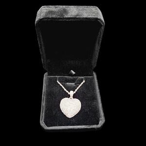 HEART NECKLACE 10K WHITE GOLD PLATED 18" SIMULATED DIAMOND MICRO PAVÉ NEW!