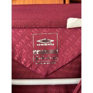 Embrace the spirit of the game with the Heart of Midlothian 1874 home football shirt by Umbro. Crafted for the passionate fan, this maroon jersey is a staple piece of apparel for exhibiting your team pride. Sized medium, it's designed to provide a comfortable fit for men while showcasing the iconic Heart of Midlothian team details.This officially licensed product ensures you're getting the highest quality for authenticity. Whether you're cheering from the stands or playing a match, this shirt is a timeless addition to any football enthusiast's collection. Wear it with honor and carry the legacy of one of Scotland's most storied football clubs.