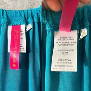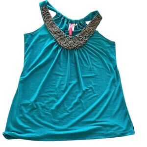 HEART SOUL Teal Tank Top Embellished Beaded Mesh Scoop Neck Sleeveless Small