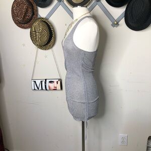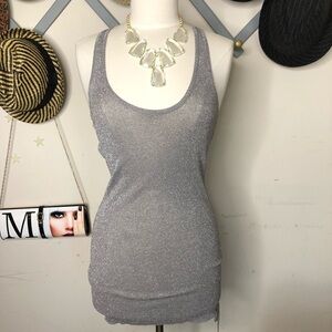 Heart Moon Star silver racer back tank top, size medium, silver shimmer throughout, 69% dull rayon 31% Lurex, no damage good condition .