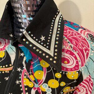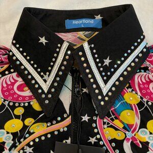 HEARTLAND Western Equestrian Show Shirt, Black Multi-Color, Sz L, NWT, $68