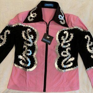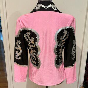 HEARTLAND Western Equestrian Show Shirt, Pink & Black with Sliver faux leather accents is perfect for any equestrian enthusiast or country music fan. Great for competition, a night out at the club or Halloween costume. NEW w/TAGS, from a smoke free/pet free home.
