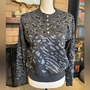 HEARTLOOM Anthropologie Natalia Grey Animal Print Crewneck Sweater - Medium