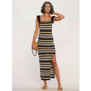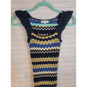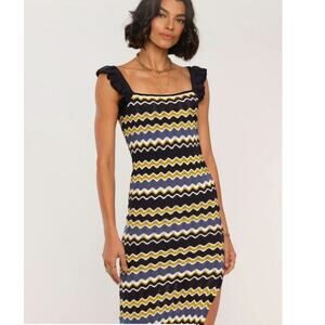 HEARTLOOM BENNET CHEVRON MIDI DRESS IN NAVY, sz XS