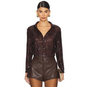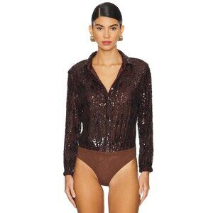 HEARTLOOM Beatrix Bodysuit in Coco Small New Womens Sequin Blouse