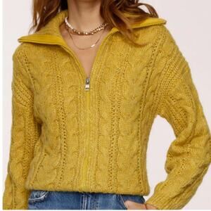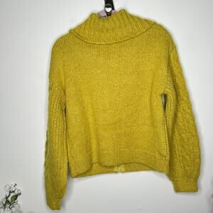 HEARTLOOM Beth Cardi Sweater Full Zip Cable Knit Citron Yellow {RR39}