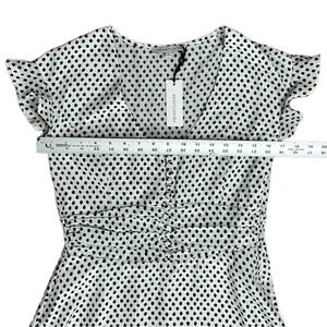 HEARTLOOM Black & White Polka Dot Dress sz S Fit & Flare V-neck Lined Ruffle Sleeve