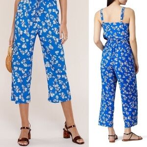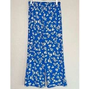 HEARTLOOM Floral Print Smocked Waist High Rise Wide Leg Ankle Cropped Trousers M