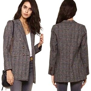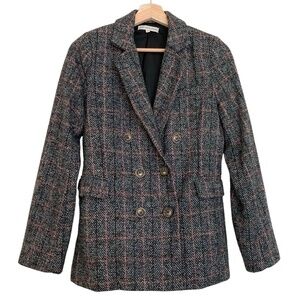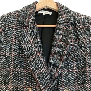 Wool blend plaid tweed-like double breasted blazer from Heartloom.
