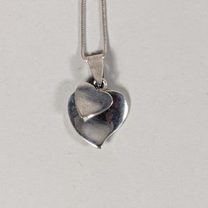 This simple but beautiful necklace features 2 hearts nestled together. Great for an everyday piece to wear - give it to the one you love!