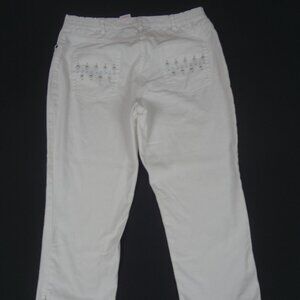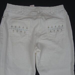 HEARTS OF PALM PETITE RHINESTONE BACK POSKETS WHITE WOMENS 10P CAPRIS PANTS K930