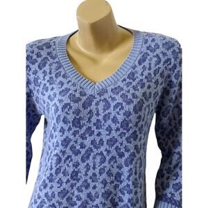 HEARTS OF PALM Womens Size Small Blue 3/4 Sleeve V Neck Animal Print Sweater