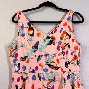 HEARTS & ROSES Dress 12 Sandy Birds Peach Tropical Novelty Vintage Repro Birds