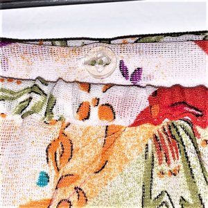 Dress for your next Luau in this colorful, whimsical & abstract tropical wrap around skirt featuring a semi-elasticated waist and standard 2- button closure. Fully lined. Very little stretch. Pair with a palm frond tiara, crop top & ankle beads and...dance the night away.