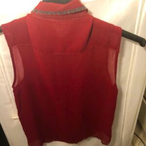 HEARTS AND BOWS WOMENS RED SHEER COLLARED SLEEVELESS TOP WITH POCKET SIZE 6