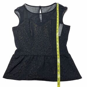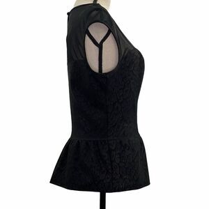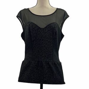 HEARTSOUL Black Sheer Mesh Leopard Peplum Blouse L