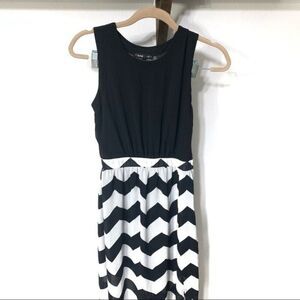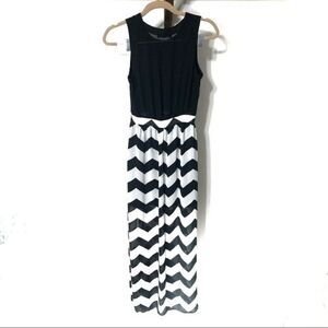-heartsoul Chevron black&white maxi dress with side zipper and sheer black; double lined in the front with mini skirt