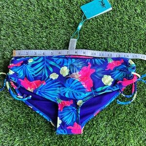 NWT Heat Luau print bikini bottom Shirred tie sides 80% nylon, 20% spandex Size small