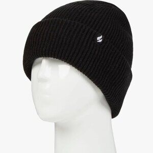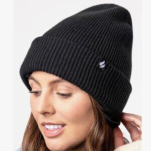 HEAT HOLDERS Women's Ribbed Cuff Beanie Hat Faux Fur Lining One Size -Black NWOT
