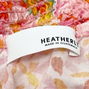 HEATHERLY Women’s Floral Cap Sleeve Crop Top Orange Pink Smocked Back Stretch MP. Excellent pre-owned condition. Minimal signs of wear. All measurements area approximate.