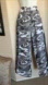 HEAVEN CAN WAIT Grey Camo Jeans, Wide Leg, Hifh Waist, Tuxedo Stripes. L EUC