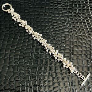 Beautiful sterling silver bracelet featuring grape type ball beads chain with toggle clasp.