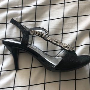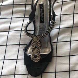 black heels with black glitter around the edges and diamond design, only worn once