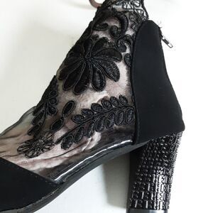 HEELS Black Lace On Sheer Netting Velvet Suede 3" size 8