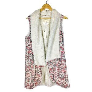 HEI HEI Anthropologie Geometric Jacquard Sherpa Faux Fur Vest