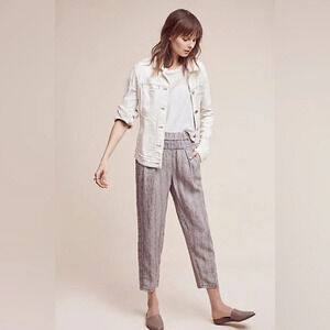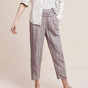 HEI HEI by ANTHROPOLOGIE Striped Linen Joggers in Brown Motif