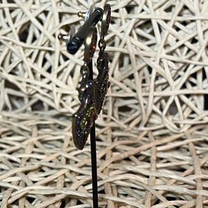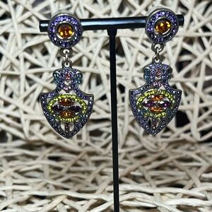 DESCRIPTION: WOW! These are so unique! Absolutely gorgeous. Photos do not do them justice. Colors of purple, orange, blue, green and magenta/violet throughout.