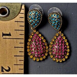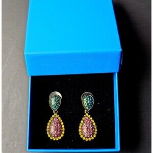 HEIDI DAUS Big Pretty Earrings Multicolor Crystal Drop 1.6" Gold Tone NEW HTF!