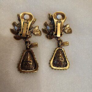 HEIDI DAUS CHRISTMAS PARTRIDGE IN A PEAR TREE CLIP EARRINGS-NEW