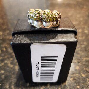 HEIDI DAUS PEAPOD RING WITH PEARL AND SWAROVSKI CRYSTAL PERIDOT - NEW