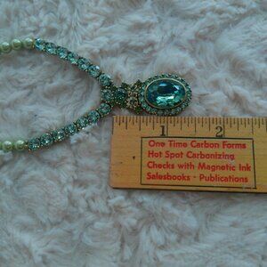 The HEIDI DAUS Pretty Precious Crystal Pearl Bead Necklace & Earrings is a stunning set featuring an oval pendant with green crystal and pearl accents. The necklace is signed by Heidi Daus and exudes a sense of beauty and elegance. The bead style and colorful design make it a perfect accessory for adding a touch of glamour to any outfit. Perfect for those who appreciate intricate detail and unique, eye-catching jewelry pieces.