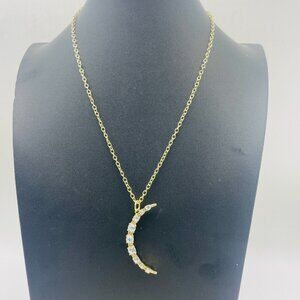 HEIDI DAUS Rhinestone Crescent Moon Pendant Necklace Gold Tone Twilight Space
