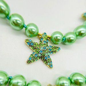 The individually-knotted green-colored glass beads are the perfect complement to this very special aquatic piece.
