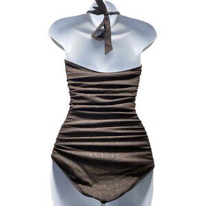 HEIDI KLEIN Halter One Piece Swimsuit Ruched Sides Underwire Summer Brown 2 81-9