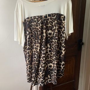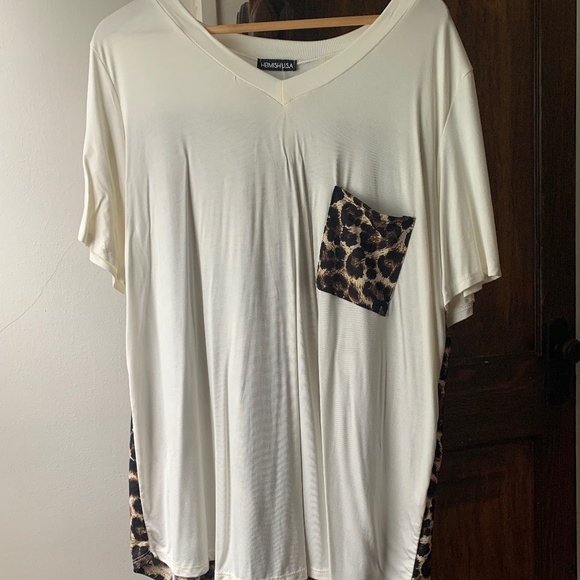 DETAILS: Curved hem, leopard graphic pocket on front, leopard graphic panel on back; both sides stretchy