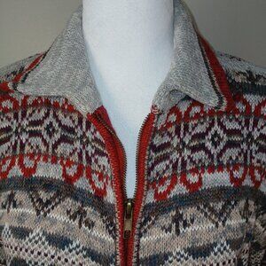 HEIRLOOM COLLECTIBLE VINTAGE FRONT ZIP CARDIGAN GRAY AND RED DESIGNS WOMENS LG