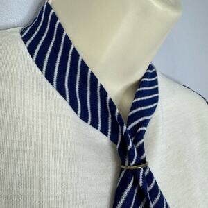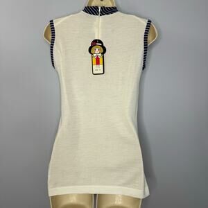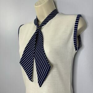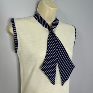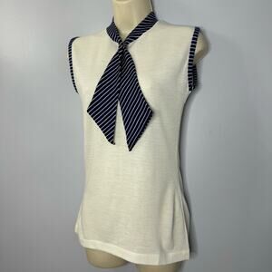 HELEN SUE 70s Vintage Nautical Collar Tie Neck Blouse Sleeveless Deadstock M