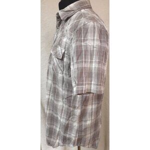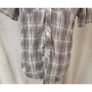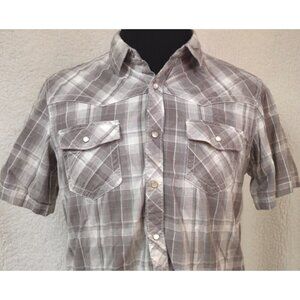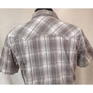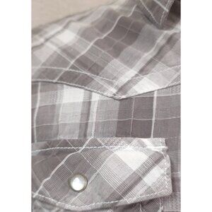 Brand & Description HELIX Mens Large Grey Plaid Short Sleeve Pearl Snap Western Cowboy Shirt