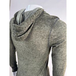 This HELIX Printed Long Sleeve Thin Shirt Hoodie in grey, size small, combines style and comfort. Made of a soft cotton blend, it's perfect for layering or standalone wear.