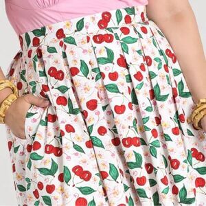 NWOT, Size: L, Color: Multicolored, All over cherry blossom; green leaf and red cherry print, Fit and flare 50s style skirt, Midi silhouette, Side seam pockets, Back zip and button closure, 100% Cotton, Machine washable *This was originally NWT but the tag fell off somewhere and I can't find it so I'm listing it as NWOT